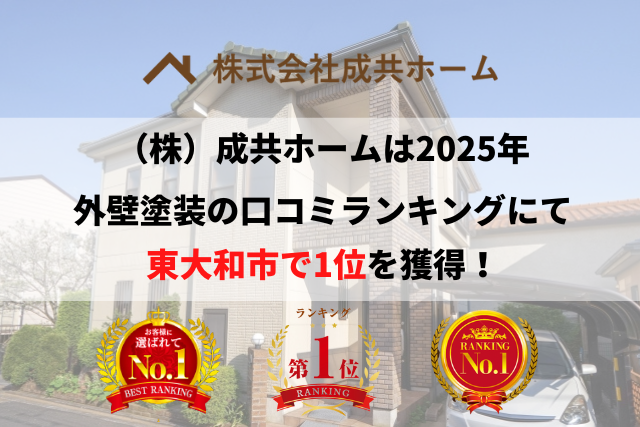 成共ホームは東大和市の外壁塗装業者で口コミランキング1位を獲得しました
