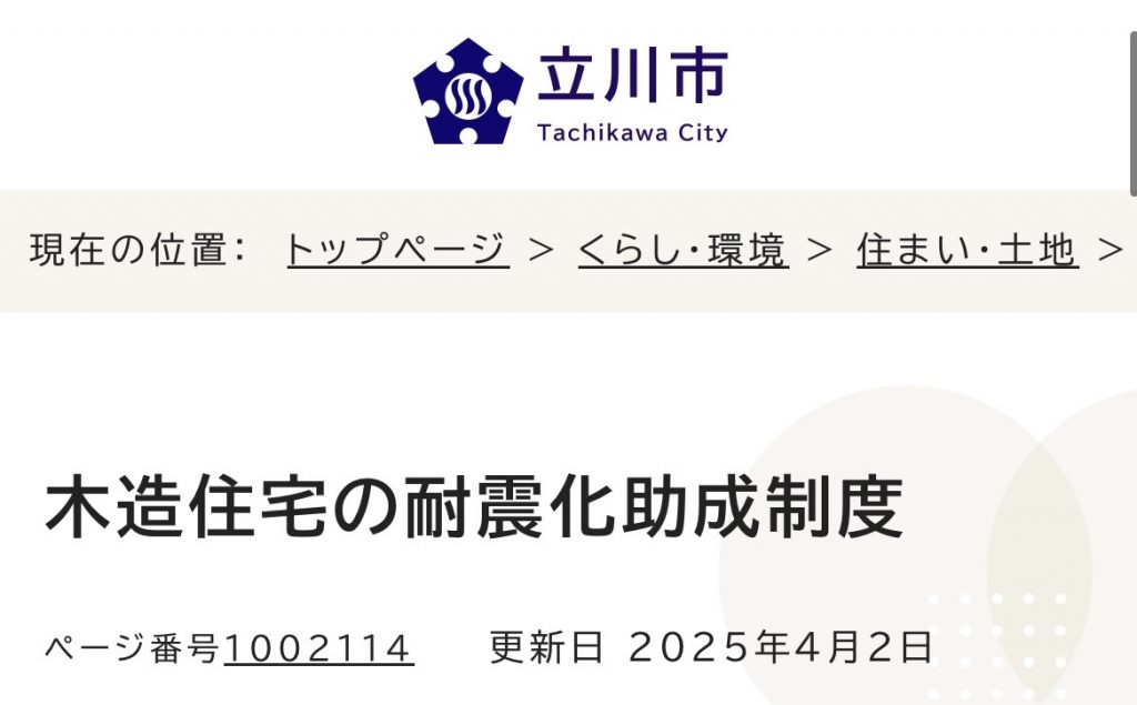 立川市のリフォームで助成金が出るのは木造住宅の耐震化助成制度という制度です。